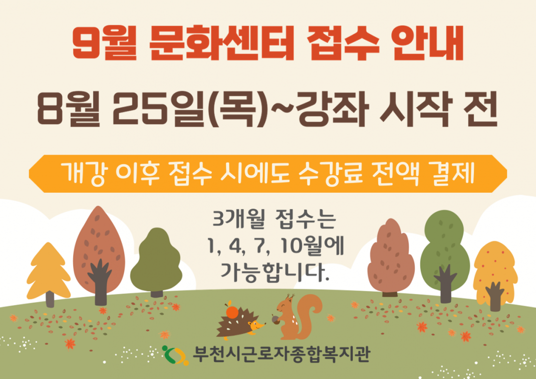 문화센터 9월 강좌 접수 안내